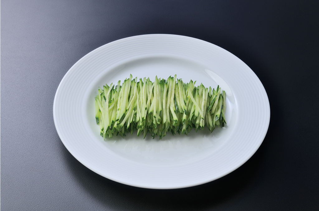 きゅうりの斜めせん切り 1本 (長さ5~6㎝、太さ3㎜角以下)